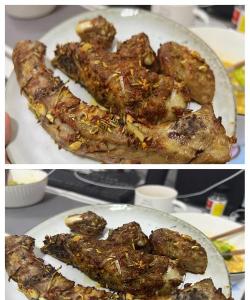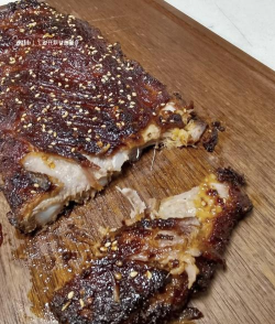- 取出烤盘,揭开锡箔纸,再放回烤箱烤10分钟。此时排骨表面应呈金黄色,香气四溢。