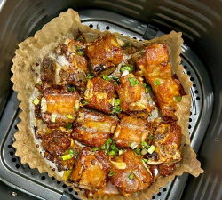 - 取出排骨后,撒上葱花或香菜点缀,再刷一次腌料和油,放入烤箱200℃烤10-15分钟,使肉质更酥脆。