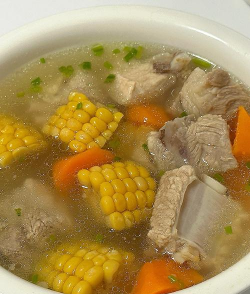 汤色: 金黄透亮,玉米粒饱满,排骨软烂入味。- 口感
