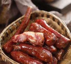 1. 排骨或肉馅灌入肠衣,注意留出膨胀空间,用棉线扎紧两端