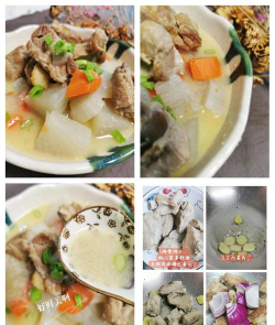 - 砂锅或电饭煲中加入焯水后的排骨和姜片,大火煮开后转小火炖40分钟。 - 加入萝卜块,继续炖20分钟至萝卜透明软糯。 - 最后加盐调味,可撒枸杞或葱花提香。 二、养生升级版(药膳版)