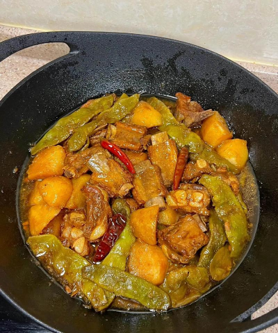 - 大火收汁至汤汁浓稠,排骨和豆角裹满酱汁,撒上葱花或香菜装饰即可。