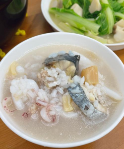 口感:排骨酥烂,鱼肉鲜嫩,粥底浓稠滑润。