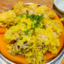 去腥处理: 排骨焯水后用温水冲洗,或用料酒、姜片、葱段腌制,可有效去除腥味 蒸制时小米铺在底部,避免堆积,确保均匀吸收排骨汤汁 蒸制时间不宜过长,防止小米过软或破裂 四、成品特点