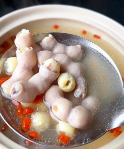 :焯水去血水,切成适当长度(如3-4厘米段)。 - 莲子处理:提前浸泡4小时以上,去芯后掰成小瓣备用。炖煮过程- 将处理好的小肠、排骨(及可选的腱子肉)放入砂锅或炖盅,加入姜片和适量清水(水量需没过食材)。 - 大火煮开后转小火慢炖2-3小时,期间撇去浮沫。 - 加入泡发好的莲子、山药(可选)继续炖煮30分钟,至食材软烂。 - 根据口味加入枸杞、盐等调味,炖煮5-10分钟即可出锅。