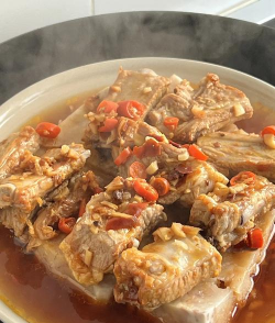 - 蒸锅加水烧开,放入排骨大火蒸15-20分钟(时间根据排骨量调整)。