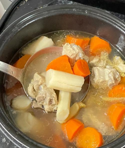 - 开大火收汁至汤汁浓稠,撒上葱花即可。 二、清炖排骨胡萝卜汤