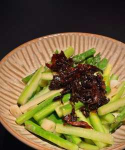 合并炒制:将炒好的牛肉条重新倒入锅中,加入盐、白糖、白醋、味精等调料,翻炒均匀。