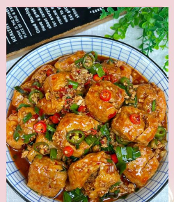 特点:色泽红亮,酱香浓郁,豆腐软嫩入味。