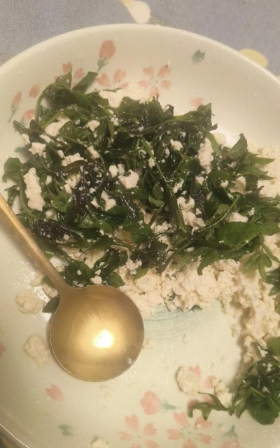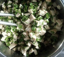 - 将豆腐倒入花椒芽中,轻轻拌匀,避免过度搅拌导致破碎。