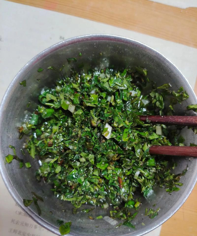 - 花椒叶提前用温水泡发,洗净后切段备用。