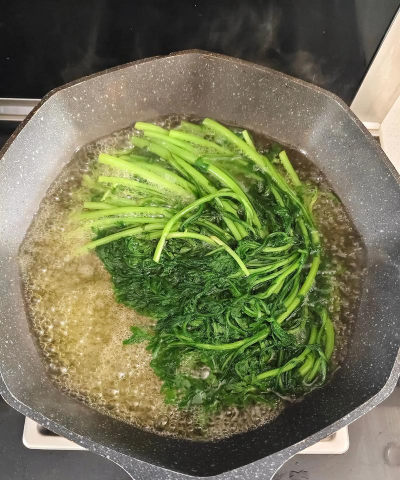 - 干品茼蒿需提前用温水泡发至变软,然后焯水并过凉,切碎备用。