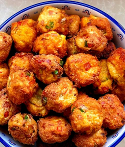 - 翻动丸子使其均匀受热,炸至表面金黄酥脆,捞出沥油。