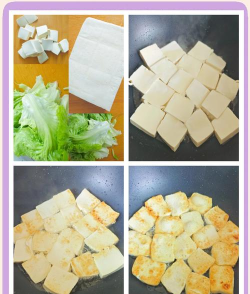- 放入裹粉的豆腐片,中小火慢煎,每面2-3分钟,煎至金黄酥脆。