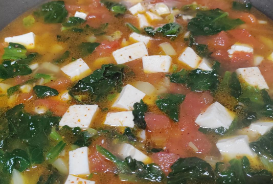 - 面条煮至软烂,加入菠菜和豆腐丁;