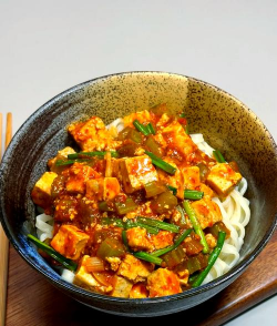 1. 肉类炒至变色后加入豆腐,翻炒均匀。2. 加入胡萝卜丝、黑木耳丝,调入豆瓣酱、酱油、花椒粉,煮至入味。3. 另起锅煮面,捞出后过凉备用。4. 将面条与炒好的豆腐混合,淋上香油,撒上七味唐辛子提香。