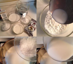 在容器中依次加入椰浆、淡奶油、牛奶和糖,搅拌均匀。