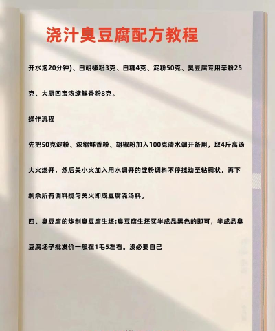 二、核心制作步骤# 1. 炸制豆腐第一次油炸: 油温160℃左右,将豆腐块放入油锅,翻滚至表面微黄且无白斑,捞出备用。 第二次油炸