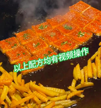 糖醋豆腐:裹淀粉炸豆腐后,淋上糖醋汁翻炒至浓稠。