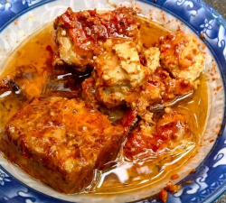 准备豆腐:豆腐切厚片后用开水焯水2分钟,捞出后过凉备用。2. 炒香配料:锅中热油,加入香茅草、咖喱块炒香,再加入番茄、青椒翻炒至软烂。3. 煮制汤底:倒入椰浆,加入鱼露、盐、胡椒粉调味,煮开后转小火煮5分钟。4. 浇淋豆腐:将焯水后的豆腐放入锅中,小火焖煮10分钟,让豆腐充分吸收汤汁。5. 收汁装盘:汤汁浓稠后即可出锅,撒上葱花点缀。