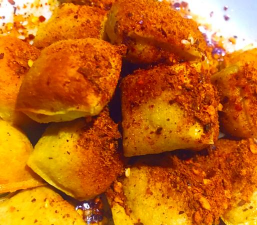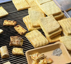 1. 豆腐裹蛋液和面包糠,放入微蒸烤一体机空气炸200°C 8分钟。 2. 撒上孜然粉、辣椒面、椒盐,翻炒均匀。