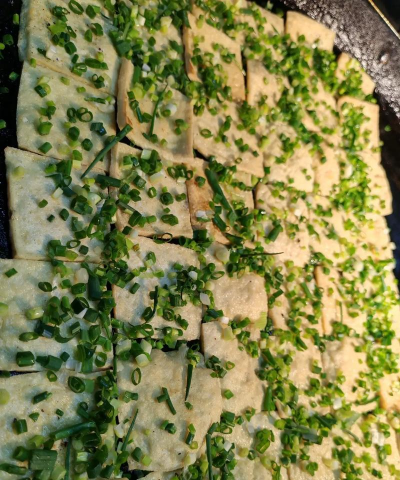 通过以上步骤,可制作出外酥里嫩、香气扑鼻的薄片豆腐,适合作为街头摊贩的快手小吃。