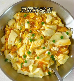 - 锅中留底油,加入豆腐翻炒至入味,倒入蛋液混合,焖煮10分钟。