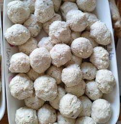 # 3. 成型与裹粉取适量豆腐馅,用手抓成直径2厘米左右的圆球,或搓成长条状