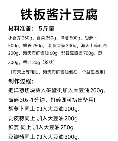 通过以上步骤,您可以轻松做出外酥里嫩、酱香浓郁的铁板豆腐,搭配米饭食用更佳。