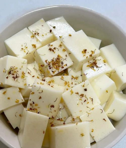2. 使糖汁裹匀奶豆腐,即可食用。