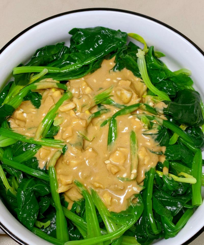 收尾汤汁收至适宜浓度后,撒上青蒜末或葱花点缀,出锅装盘即可。