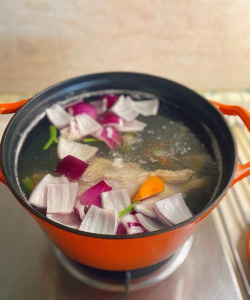 3. 在锅中倒入适量的食用油,加入葱姜蒜末炒香。
