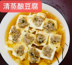 三、关键技巧豆腐选择: 老豆腐比嫩豆腐更韧,适合酿制。若豆腐过软易碎,可适当延长蒸制时间或裹更多淀粉。 煎豆腐时用中小火,避免表面焦糊。翻面要轻柔,保持形状完整。