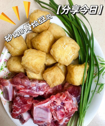 排骨焯水去血沫,捞出备用。2. 煎豆腐泡