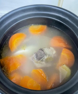 - 大火烧开后转小火,炖煮1小时左右(根据骨量调整时间)。