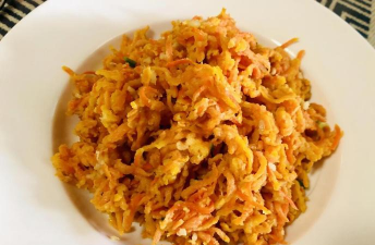 口感:软糯筋道,胡萝卜丝充分吸收调味料香味。