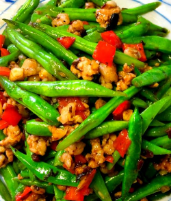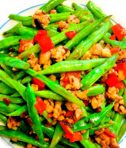 - 四季豆去头尾,洗净后斜刀或切段,焯水1-2分钟捞出,过凉后沥干水分。