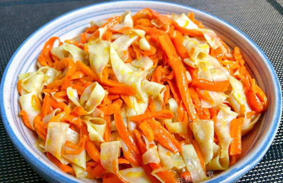 - 胡萝卜切丝:胡萝卜去皮擦成细丝,放入盐水中浸泡10分钟,捞出后过凉备用;