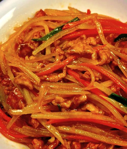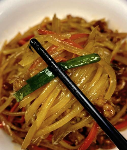 土豆胡萝卜丝炒五花肉的做法