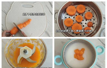 以下是胡萝卜泥加米糊的详细做法,综合了多种实用步骤和注意事项:主料:胡萝卜1根...