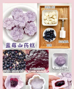 蒸煮食材:山药切段、紫薯切片,蒸20分钟至软烂,压成泥状。2. 混合调味:加入炼乳或白糖、桂花蜂蜜搅拌均匀。3. 成型与装饰:分球按压成型,刷上橄榄油,点缀桂花,冷藏定型后脱模。