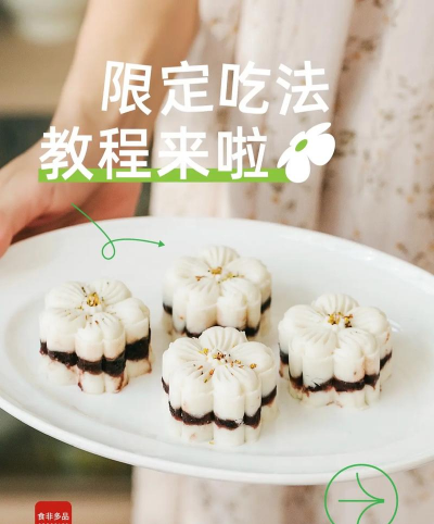 冷藏后装饰:将做好的蓝莓山药放入冰箱冷藏30分钟,让口感更佳,并且可以更好地进行装饰。