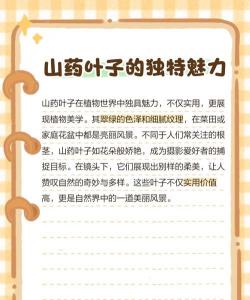五、其他小贴士焯水技巧: 山药叶焯水时间不宜过长,避免影响口感。- 营养保留
