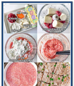 1. 牛肉片用葱姜水泡几次,泡出血水,放入搅拌机搅打成肉泥,加入山药片一起打碎。