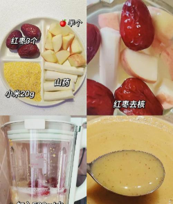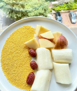 主料: 小米 50克 山药 100克(去皮刮成粉末) 苹果 50克(去皮切碎) 辅料