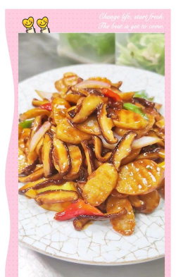 一、香菇炒山药材料:鲜香菇、山药、彩椒、生抽、蚝油、盐、淀粉、香油
