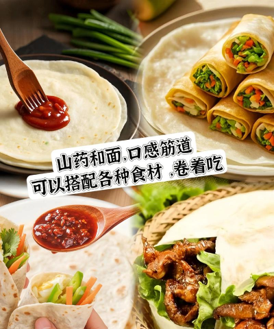 # 3. 包制方法裹面:取面团或春卷皮,擀成薄片后包裹山药泥,边缘可捏紧或包成半月形。