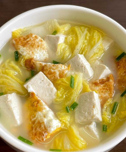 三、包菜豆腐煲 特点: 营养均衡,汤汁醇厚,适合冬季食用。 步骤食材准备