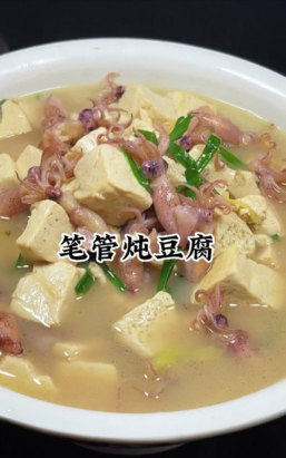 3. 下豆腐煮开,再下入笔管,炖至熟透。