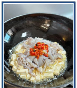 做法四食材:笔管鱼、老豆腐、葱、姜、鲜鸡汁、盐。